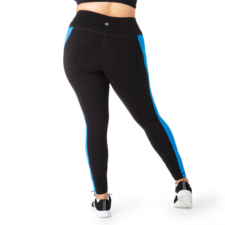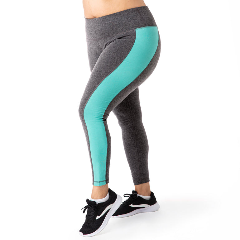 Our color block leggings pairs perfectly with our color block tank. These flattering silhouette in your favorite cotton/spandex fabrication with wicking, these leggings keep you cool and dry during even the toughest workouts. The 10% spandex stretches and moves with you, the comfortable rise and waistband that stays in place while you move. Offering the ideal blend of fashion and function, it's perfect for the yoga studio, gym, hiking, or any active pursuit.