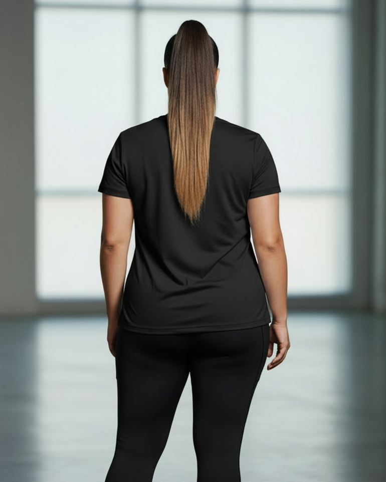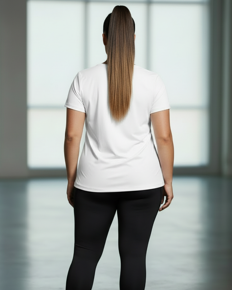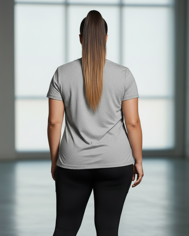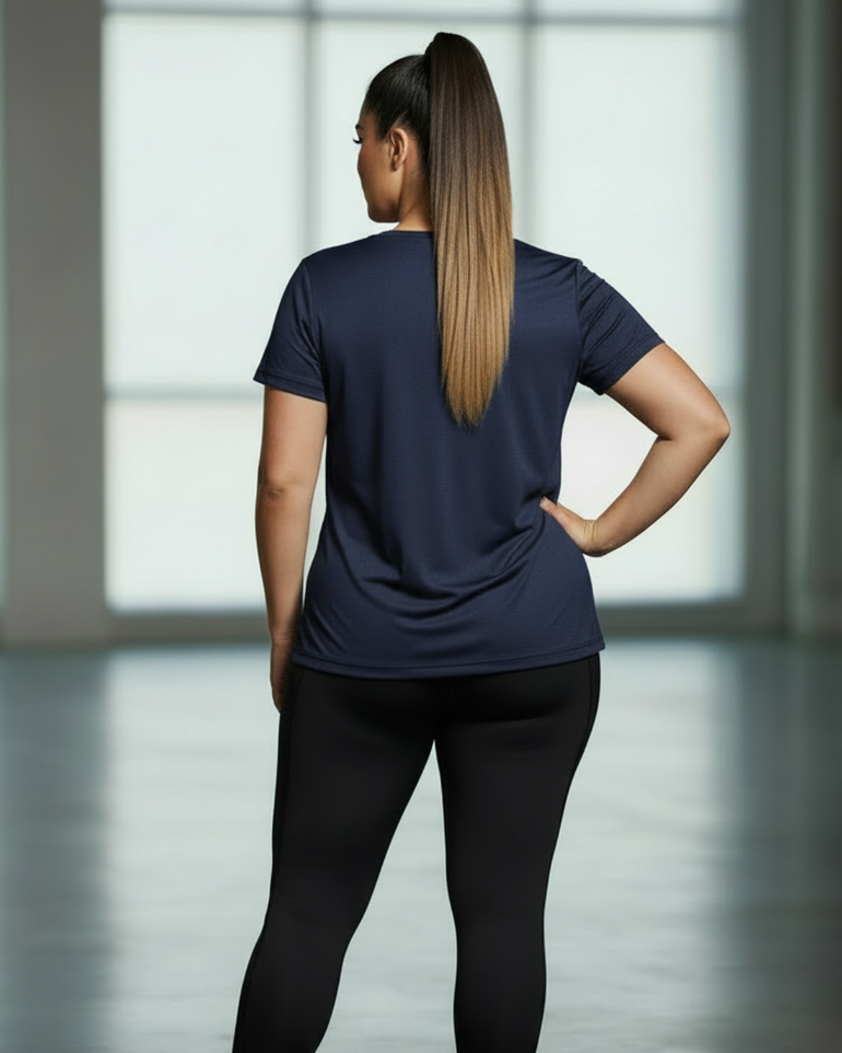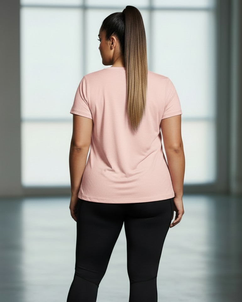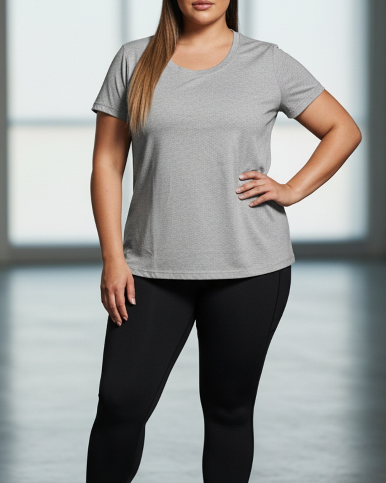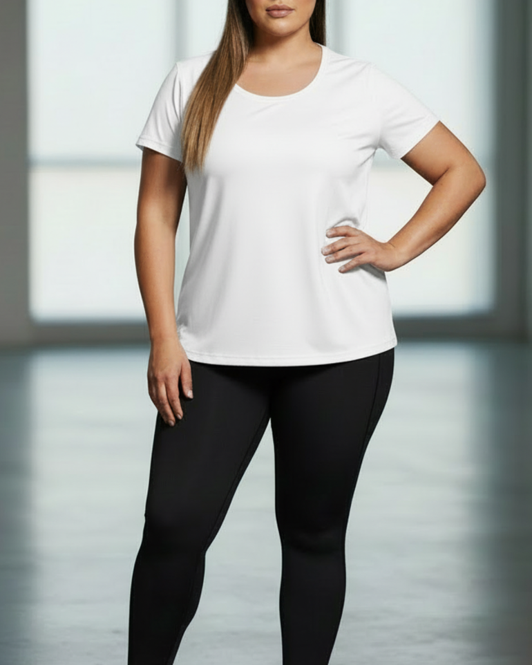 A true everyday essential, designed to move with you. This versatile basic-meets-active tee is crafted from a lightweight, breathable cotton-blend fabric with moisture-wicking performance to keep cool, dry, and comfortable from workouts to all-day wear. Finished with a relaxed yet flattering silhouette, it drapes effortlessly on the body and offers easy movement without sacrificing style or comfort.